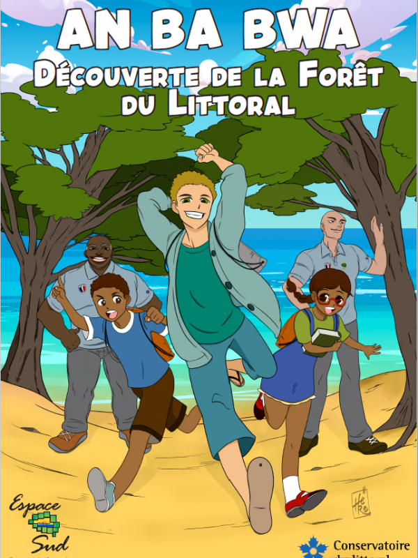 1er Tome de la BD "An ba bwa". Cette BD pédagogique est destinée aux jeunes de 8 à 12 ans. Ce tome aborde différentes notions telles que la protection de la forêt du littoral et la découverte des espèces végétales.