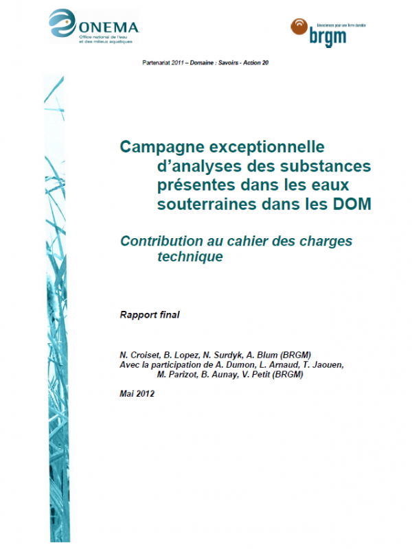 Rapport présentant les substances détectées dans les eaux souterraines des DOM, parmis une liste de polluants proposée par la Direction de l’Eau et de la Biodiversité (DEB)