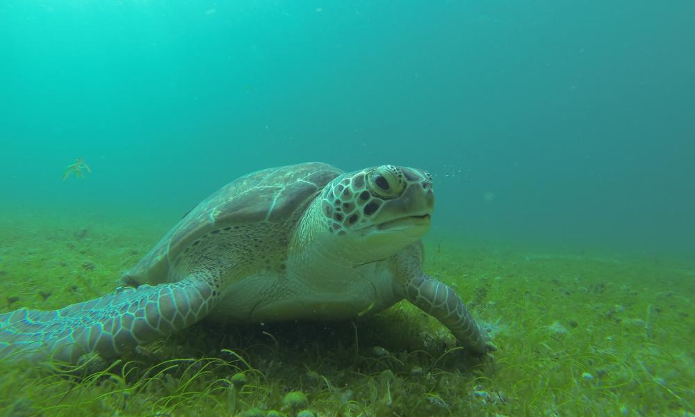 La Tortue verte (Chelonia mydas), aussi connue sous le nom de Tortue franche, est la plus grande tortue marine à écailles...